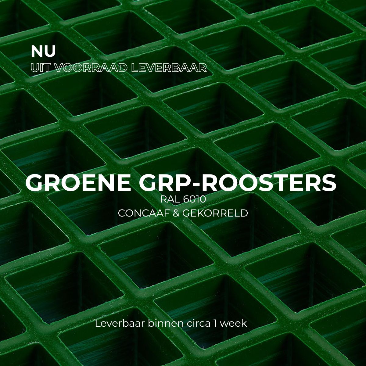 Groene GRP-roosters (RAL 6010) uit voorraad leverbaar bij Lichtgitter Belgium