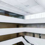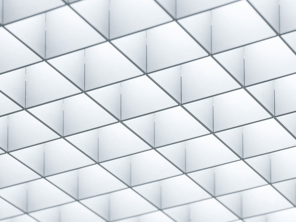 Un revêtement de plafond composé de caillebotis pressés en acier est également possible ! Les grilles en acier peuvent conférer au plafond un caractère élégant et industriel, créant ainsi un aspect moderne. Comme l’acier peut être lourd, on utilise souvent des caillebotis en aluminium dotés d’un système de suspension unique. Grâce à la liberté de forme et aux possibilités de combinaison infinies, il est possible de créer un ensemble acoustique. Il est également possible de dissimuler les conduites ou les luminaires.