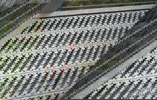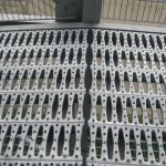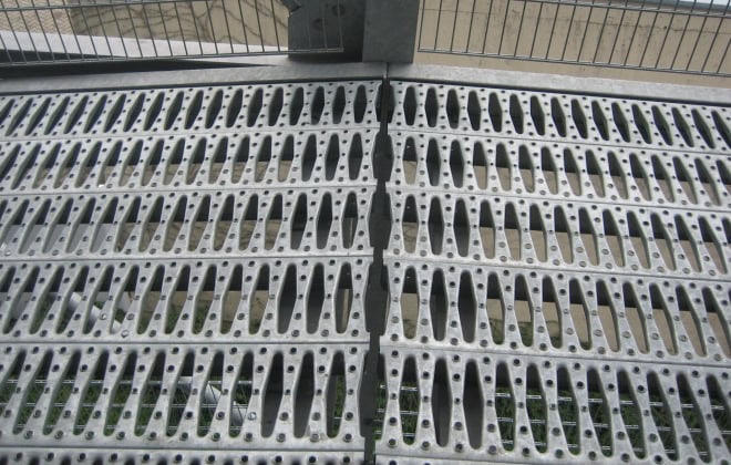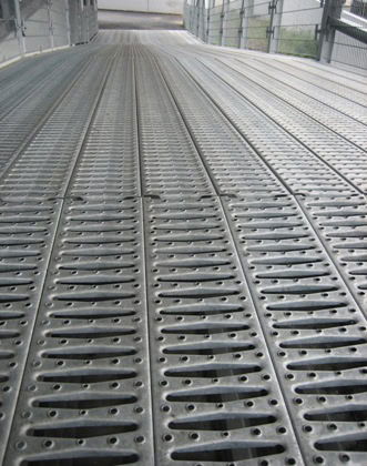 Diverses cages à plateaux avec application de caillebotis pressés circulaires installés dans l’ensemble des Pays-Bas. Commercialisé par Erma Sport